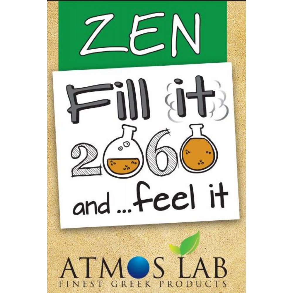 To Atmos Zen 20ml είναι μία σειρά από καπνικά αρώματα, με συμπαγές σώμα και πλούσιο άρωμα, αναμίχθηκαν με ένα ιταλικό χαρμάνι καφέδων. Το μείγμα χαρμανιών εμπλουτίστηκε εν συνεχεία με βανίλιες Βελγίου και Μαδαγασκάρης που ευωδίαζαν τρίμμα τραγανού μπισκότου.