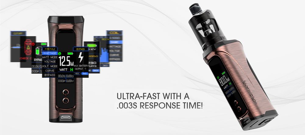 Η συσκευή διαθέτει ένα προηγμένο chipset το οποίο μπορεί να παράγει μέγιστη έξοδο 80W και τροφοδοτείται από μια αποσπώμενη μπαταρία 18650. Με την βοήθεια της πλακέτας που διαθέτει καταφέρνει και αποδίδει από 6W έως 80W (1V – 7.5V) , και άμεση απόκριση με το πάτημα του Power Button σε ελάχιστα κλάσματα του δευτερολέπτου.