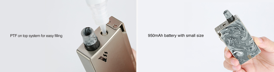 Το πρωτότυπο αυτό σύστημα αναπλήρωσης διευκολύνει την διαδικασία χωρίς να χρειάζεται να αφαιρούμε την δεξαμενή Pod από το σώμα της συσκευής.